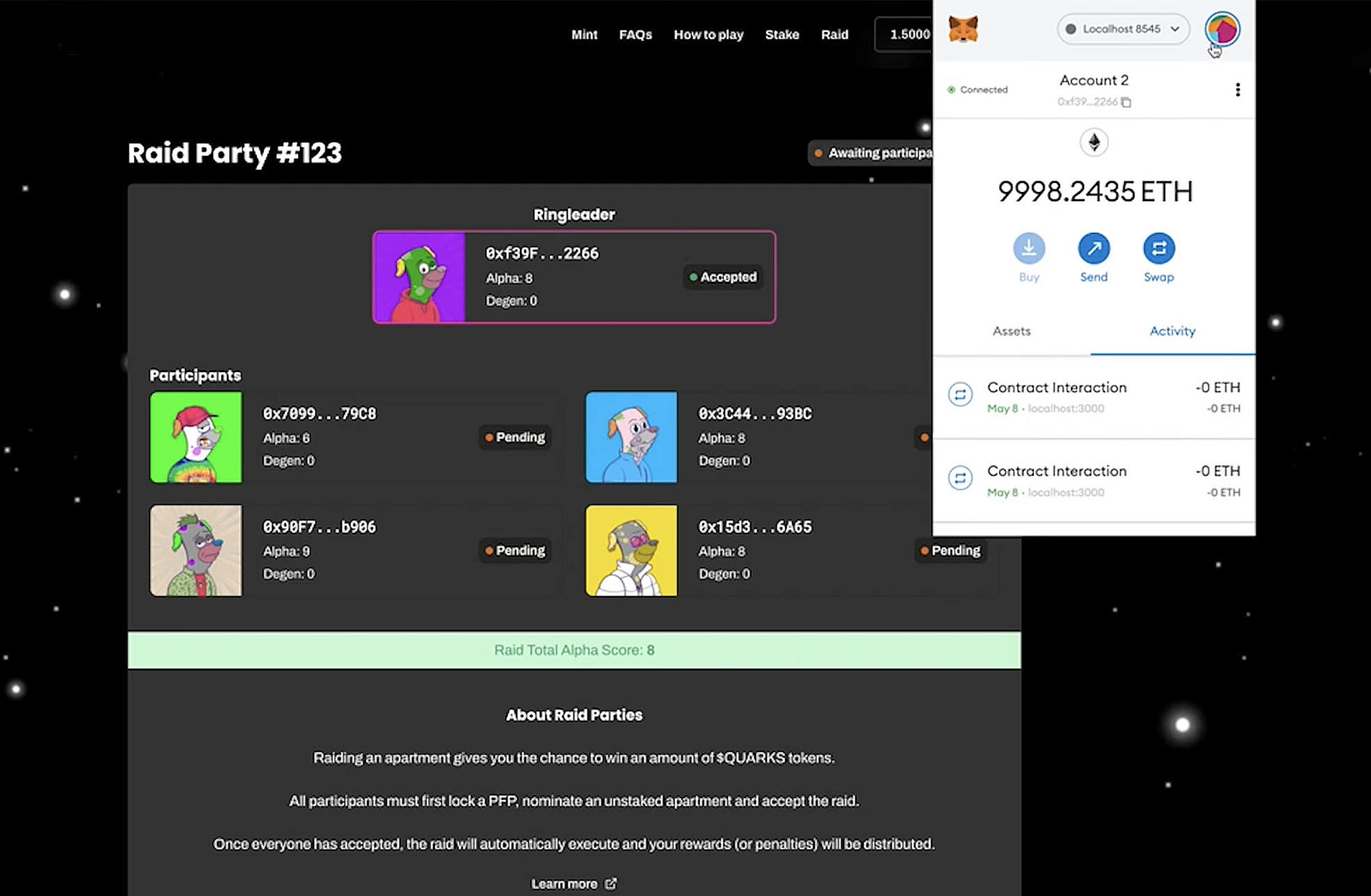 Smart contract development for Web3 project involving staking of ERC721a tokens to earn ERC20 tokens and gamification mechanics